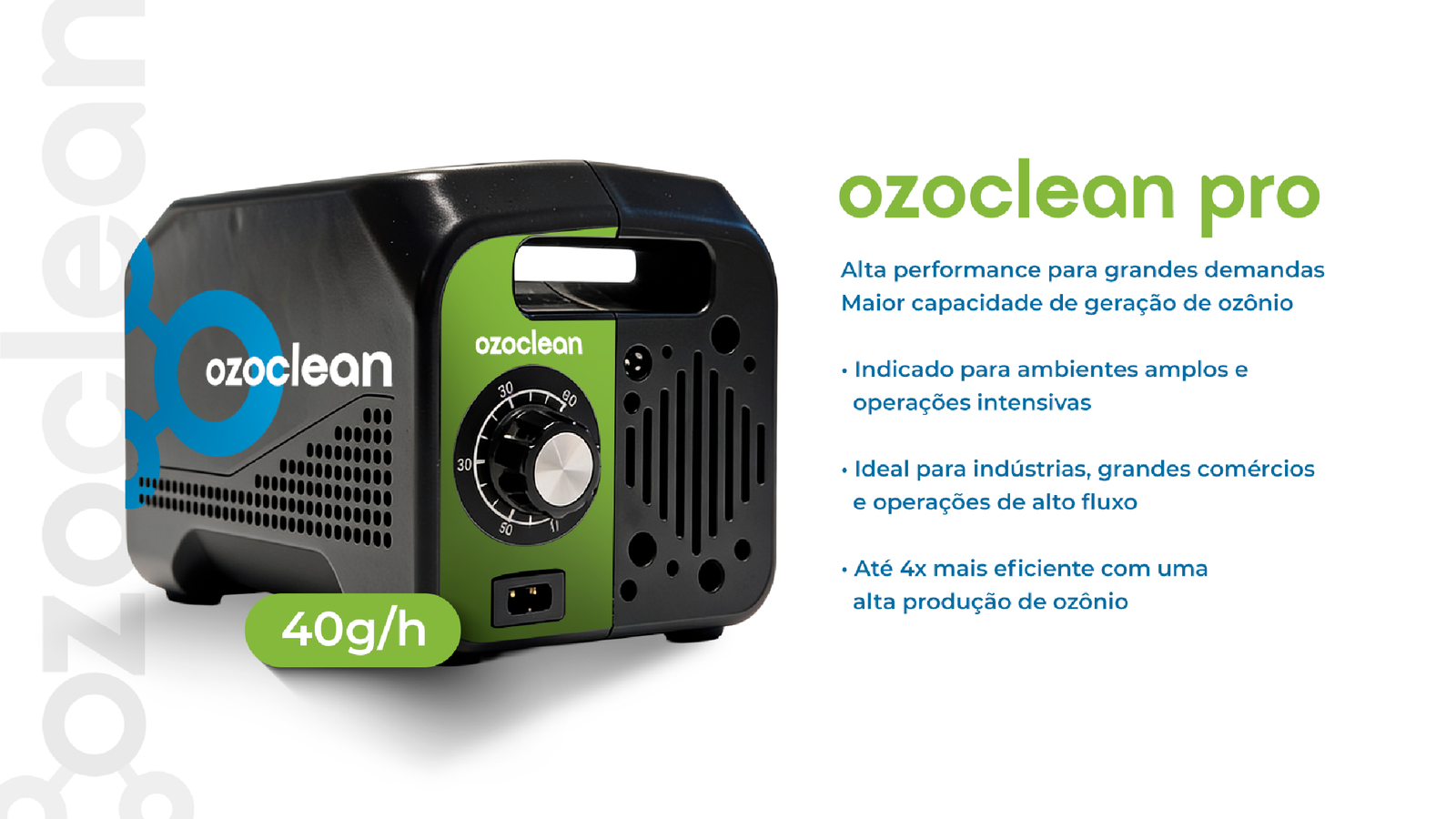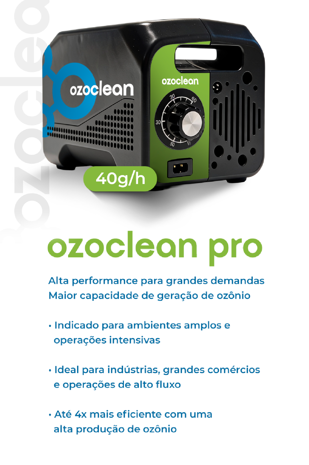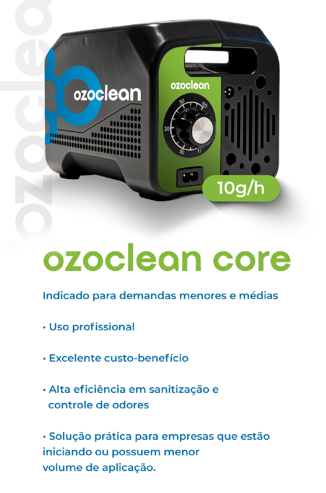 Atualmente, a Ozoclean conta com dois modelos de geradores de ozônio, desenvolvidos para diferentes demandas do mercado profissional.